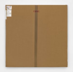 Drawn to his series for their engagement with large-scale US paintings, the cardboard wrappings become monochromes and readymades, “complete with packing tape and transport labels” and will also require anyone who purchases one to keep it wrapped until the year 2081.