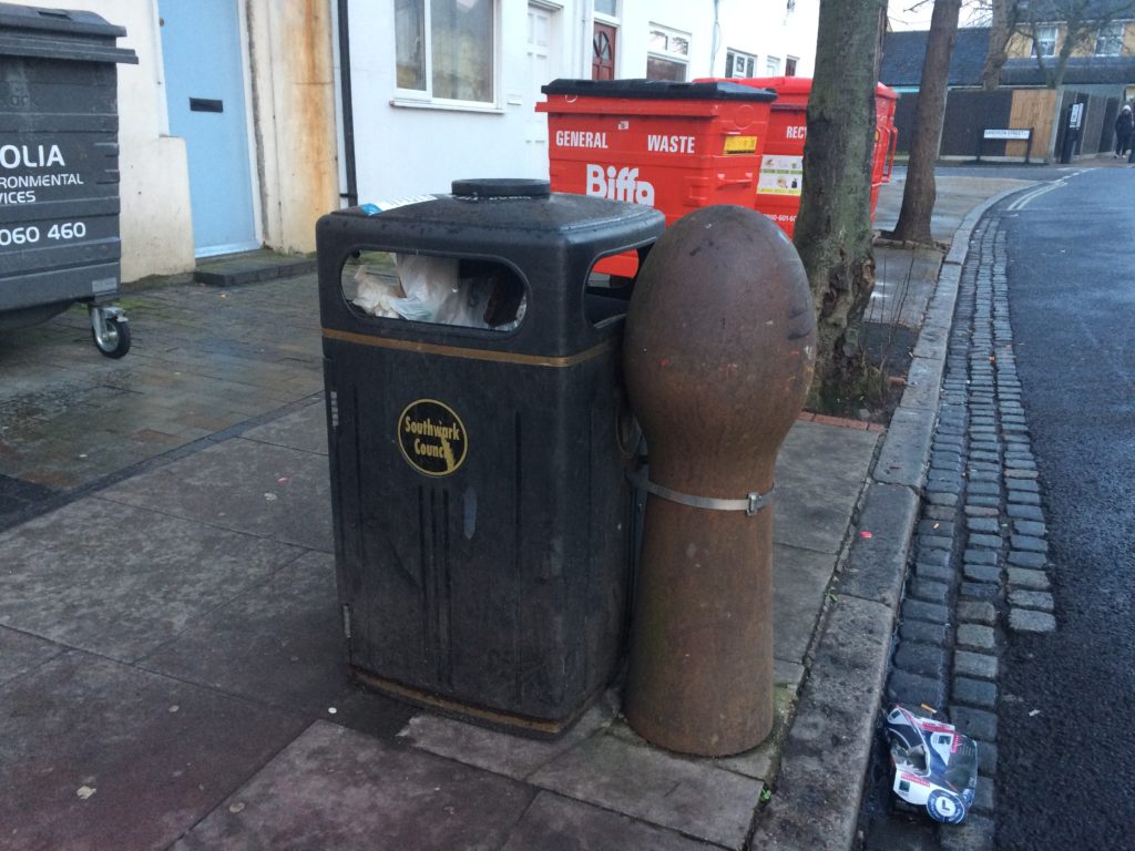 Several blocks west of the municipal high street amenities of Rye Lane, lies Bellenden Road, a locale that emerged in the latter part of the 00s as a humorously named exemplar of gentrification in Peckham (see here for the translation of the anatomical British slang word ‘bellend’). In 2001, Bellenden Renewal Area, a scheme organised by Southwark Council, encouraged regeneration to happen locally by involving traders and residents with as few outside contractors as possible. The project included community-initiated commissions by several established local artists and included murals, customised pavement stones, railings, lampposts etc.; the most notorious of which were a set of aptly phallic bollards by artist Antony Gormley that now lines the area’s small streets. Southwark Council saw the concentrated regeneration plans of the area as a prototype for communally-driven regeneration initiatives.