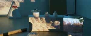 The fact that Baga’s video installations initially look cheap and slightly haphazard is a clever device for getting you with your guard down. Grounded in materiality and process, there are no clear edges to this work and upon entering the space it’s hard to know where to walk. The gallery itself appears more like a workspace where during installation, the artist, using whatever items are at hand, neglects to discard those that aren’t needed. Small lumps of Blu-tack remain on the wall and extension cords lie on the floor unplugged. It feels transient and without intention.