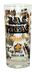 Black/Gold Painted glass with Las Vegas icons from top to bottom.