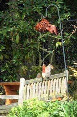 bluejay bird, a Clorox bottle with the label removed