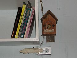 bluejay bird, a Clorox bottle with the label removed