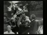Couple in office register a death, mourners in cemetery, funeral procession cut with wedding, ends with birth