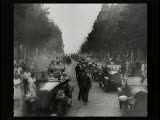 funeral procession shot from in front of hearse
