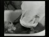 baby emerges between woman's legs