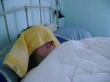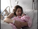 woman in labor in hospital- shot of head, torso, she's moving, talking
