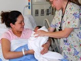 nurse hands woman baby