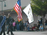 busy street-2 lanes of traffic (the funeral procession) shot from between the lanes