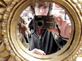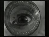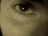 lens of camera fills frame, camera eye fills inside blinking, reflection of manwmc filming inside eye