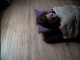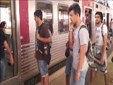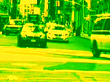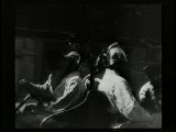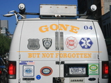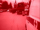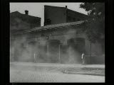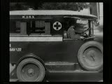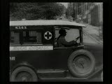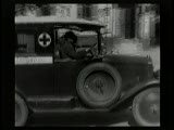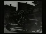 ManWMC chases ambulance and fire engine, shots of both intercut