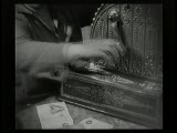 Shots of abacus and cash register being used, newspaper printing then rapid