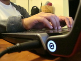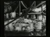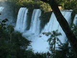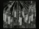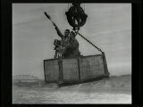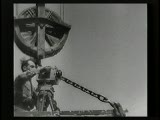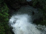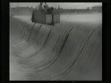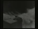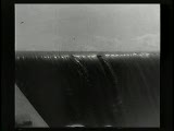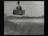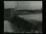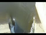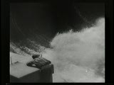 manwmc walks down path at side of dam,; sets up camera at base near splashing water