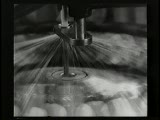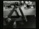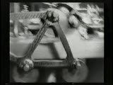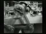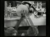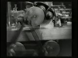 succession of shots I frame manwmc intercut; with 2 frames of various machine/factory close ups last frame is closeup of lens