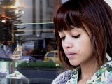 cigarette roller combing her hair, smiles at camera