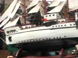 side of steamship moving out