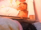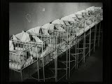 2 babies faces+ blankets-split screen; Objects, places all vacant, motionless-most come back later as city wakes up