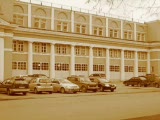 facade of bus depot. Name of it subtitled
