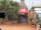 large wine bottle in outdoor café,trees move