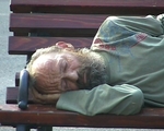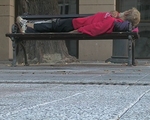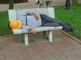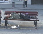 derelict sleeping on park bench,no movement