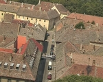 aerial diagonal view of modular rooftops