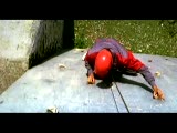 long jumper jumping over camera