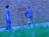 back and forth shots of football players and goalie