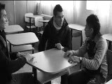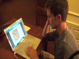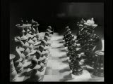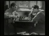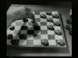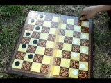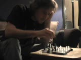 are playing chess and music. Close ups of radio speaker, hands tuning