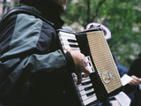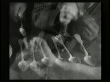 radio, playing accordion, piano, spoons and bottles intercut then rapidly