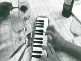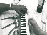 superimposition involving hands playing piano, hands playing the spoons and bottles, hands snapping, and feet dancing