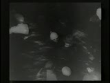 Three bright white zigzag lines divide screen, people in theatre cut with