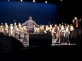 triple split screen of feet dancing, hands playing piano and a woman singing opera