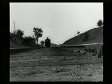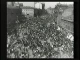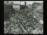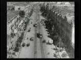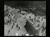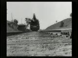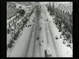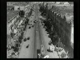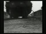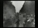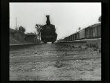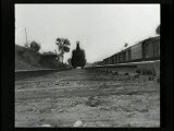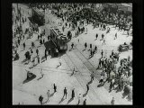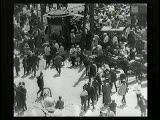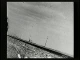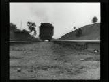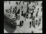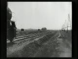 With street scenes,trolleys,train coming towards camera.Superimpositions