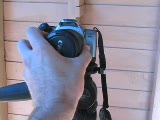 front view of camera,canges lens,turns; camera to side view
