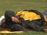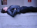 derelict on street wakes up scratches himself