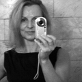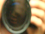 close up camera lens with reflection of; cameraman