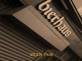 shot of a beerhall where the sign dissolves from Russian to german