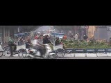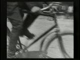 man riding a bicycle though the city