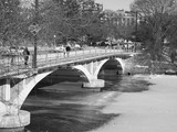 people walking across the bridge