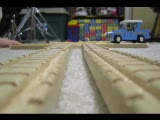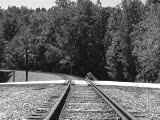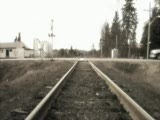 railroad tracks. manwmc in car crosses left
