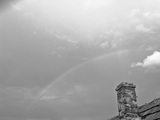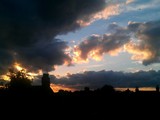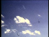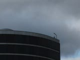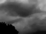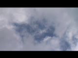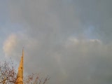 superimposed clouds moving fast behind building