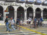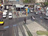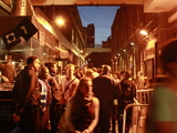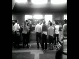 gates open, throngs of people with; suitcases, boxes rushing towards