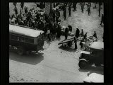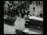 aerial view of busy street with all kinds of activity, cars, pushcarts, people walking