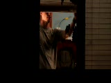 woman opens shutter (shot from outside; with shadow of tree on shutter. Same