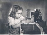 mannequin with sewing machine(07:17:54),; machine now sewing