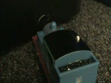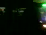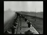 train speeding around a bend shot from roof