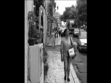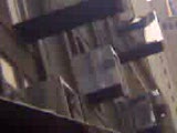 splitscreen of high rise buildings slanting; with cameraman superimposed on left