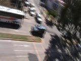 blurred footage of street with houses & trees