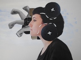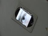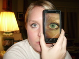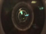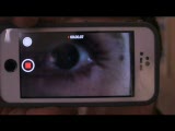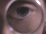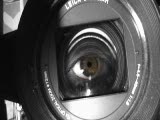 lens of camera fills frame, camera eye fills inside blinking, reflection of manwmc filming inside eye