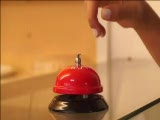 person furiously ringing big bell
