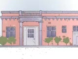 facade of bus depot. Name of it subtitled